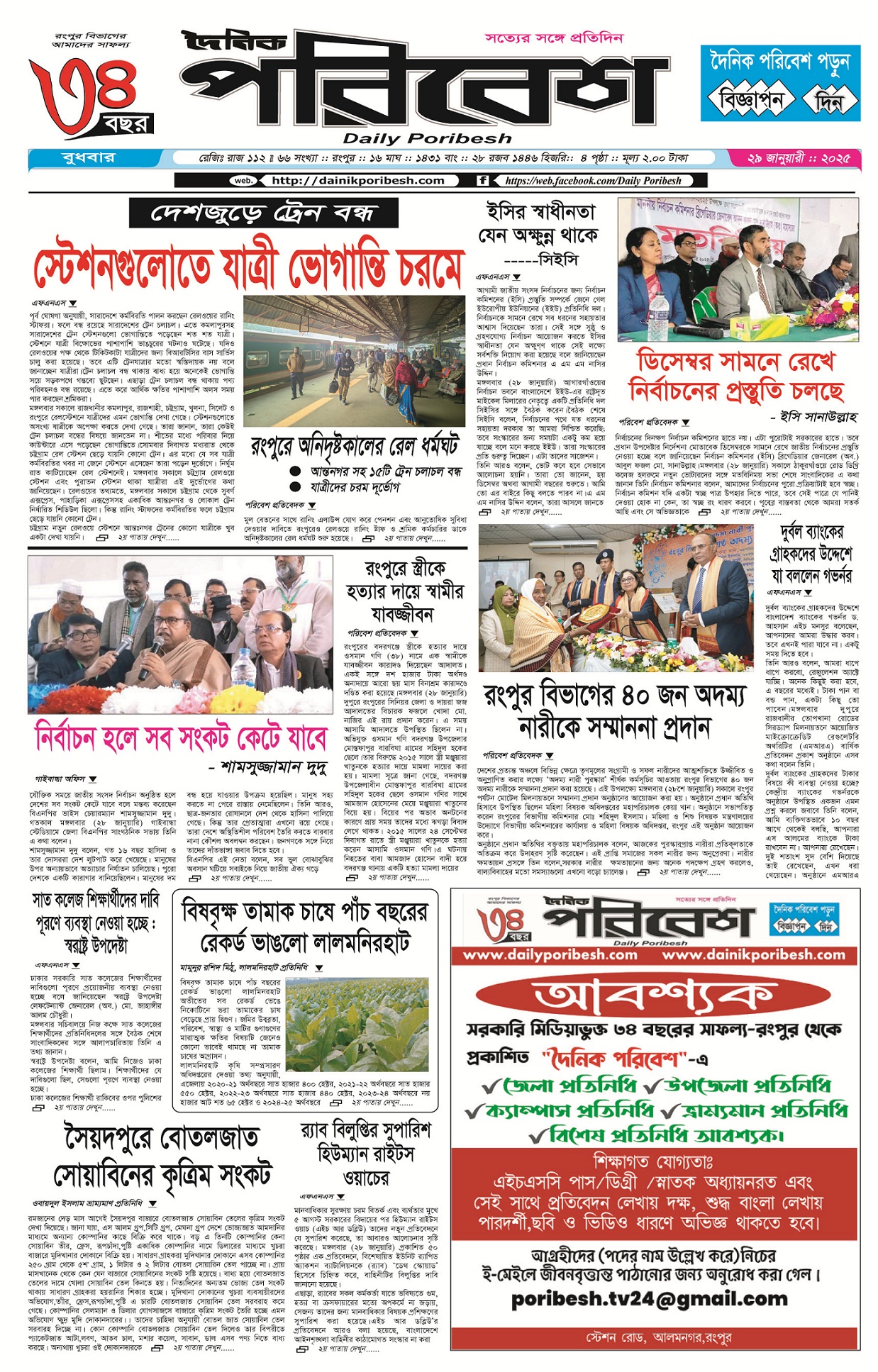 dainik poribesh January 29, 2025